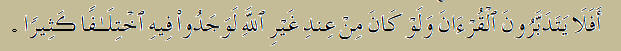 "Then do they not ponder consider / meditate upon / research intently / study the Quran? And if it had been from other than God, surely they (would have) found in it much causes for disagreement / dispute / incongruity / discrepancies / contradictions ('ikh'tilafan')"