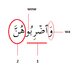 Let us examine the two main parts of the word again, 'Idrib' (1) being an imperative verb and 'Hunna' (2), a feminine plural pronoun (referring to the wives)