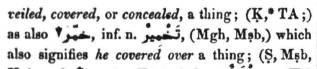 It is formed from the root word ‘Kha-Miim-Ra’ which primarily means to ‘conceal or to cover’. A veil is an example of such a covering but it is not restricted to it.