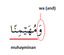 Muhayminan - guardian to watch and determine what is true and what is false witness, afforder of security and peace, controller and superintendent of all the affairs, protector.