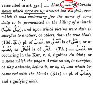 "...Stone altars (Arabic: Ansabu) ... (are an) abomination from (the) work of Satan..."