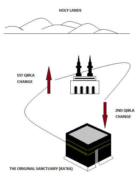 Two Qibla changes are noted from the Quranic verses. It has been suggested in the above article that the original Qibla was indeed the Makkan sanctuary (the Ka'ba). This was later changed for the reasons cited by verse 2:143 to possibly a location in the Holy Lands such as Jerusalem which was the centre of devotion for the people of the previous scriptures. The second Qibla change was a reversion back to the Ka'ba from the Holy Lands.