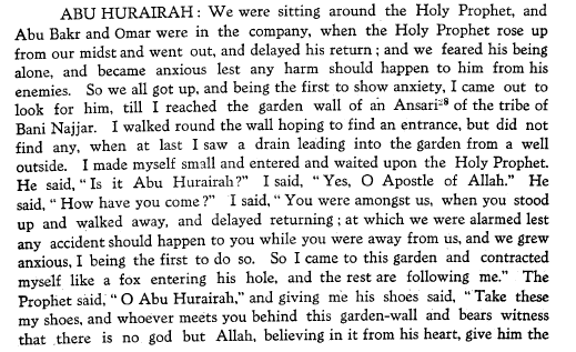 (1) Abu Hurairah’s Hadith where he is beaten by Caliph Umar and a shoe is presented as proof.