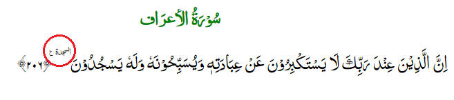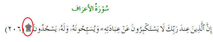 An absence of any symbolic indication that a prostration is required is noted at the end of verse 206 of Chapter (Surah) 7.