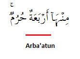 “Lo! the number of the months with God is twelve months by God's ordinance in the day that He created the heavens and the earth. Four (Arabic: Arba'atun) of them are sacred: that is the right religion. So wrong not yourselves in them. And wage war on all of the idolaters as they are waging war on all of you. And know that God is with those who keep their duty (unto Him)”