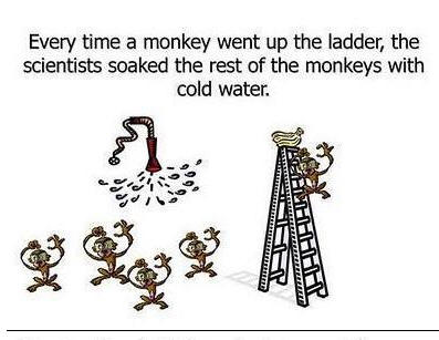 FOLLOWING TRADITIONS BLINDLY - TRAINED MONKEYS EXPERIMENT