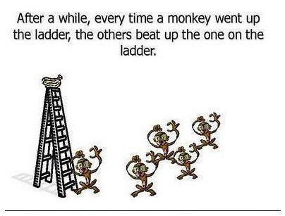 Irrespective of its source depicted in terms of monkeys, the illustration certainly captures an observable human condition.