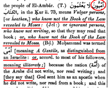 The classical Arabs understood the word 'Ummi' to mean gentile (non-Jew)