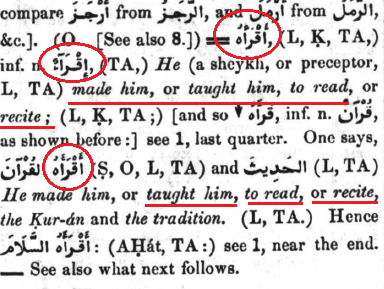 Note the use of 'Iqra' in conjunction with the teaching by the Pen.