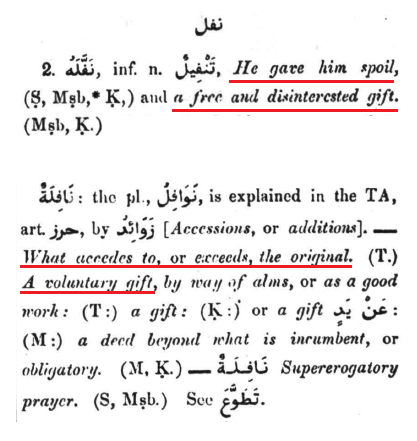 [1] LANE. E.W, Edward Lanes Lexicon, Williams and Norgate 1863; Librairie du Liban Beirut-Lebanon 1968, Volume 8, Supplement, Page