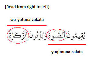 'yuqimuna-salata (establish prayer) wa-yutuna-zakata (and give zakat)'