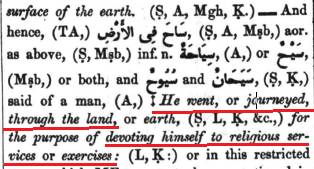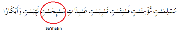 The expression ‘As-Saihun' (those that wander) is attributed to ‘As-Sa’imun’ (those who fast) and is justified metaphorically by insinuating that those that fast deprive themselves of worldly enjoyments similar to one who wanders about the earth. However, early authorities did not necessarily agree with this rendering and other early authorities preferred the original significant meaning as those that wander about in the cause of God, which is consistent with the other usages found in the Quran.