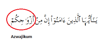 The root of the word 'Azwaj' is Zay-Waw-Jiim which means to couple, join, pair, wed, unite, marriage, a pair or spouse.