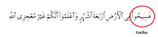 “Travel freely (Arabic: Fasihu) in the land four months, and know that ye cannot escape God and that God will confound the disbelievers”