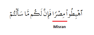 Egypt is clearly Misr according to the Quran and not a random town, or city, as is commonly mistranslated by English commentators.