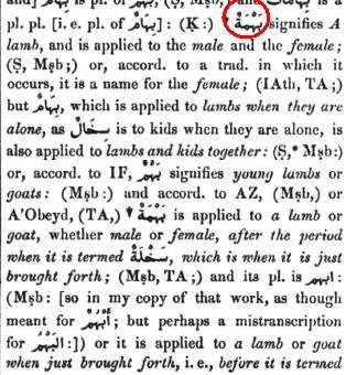 Root = Ba-Ha-Miim = animals that pasture/graze, lamb/goat/sheep, animals of the bovine kind, beasts/brutes.