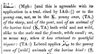 [1] LANE. E.W, Edward Lanes Lexicon, Williams and Norgate 1863; Librairie du Liban Beirut-Lebanon 1968, Volume 1, Page 268