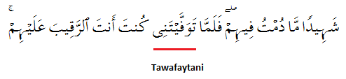 Note the use of the word ‘Tawaffaitani’ in verse 5.117 which will be discussed in more detail in the next section which means the taking away of the soul in death.
