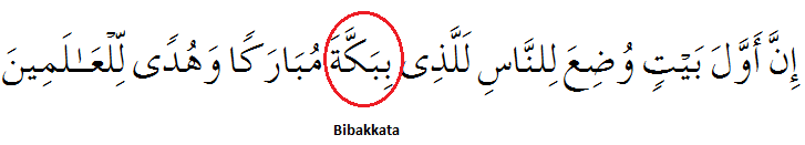 "The first House (of worship) appointed for men was that at Bibakkata (Bakkah): Blessed and a guidance for all kinds of beings"