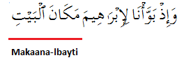 "Behold! We gave the site, to Abraham, the site of the House (Arabic: Makaana-lbayti), (saying): "Associate not anything (in worship) with Me; and sanctify My House for those who compass it round, or stand up, or bow, or prostrate themselves (therein in prayer)"