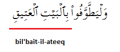 "Then let them complete the rites prescribed for them, perform their vows, and circumambulate the Ancient House (Arabic: bil'bait-il-ateeq)."