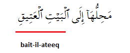 "Therein are benefits for you for an appointed term; and afterward they are brought for sacrifice to the Ancient House (Arabic: bait-il-ateeq)"