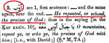 The Arabic word 'Awwibi' comes from the root (Alif-Wa-Ba) which means more literally to repeat or echo. However, the chanting nature of the Psalms in the first instance remains evident.