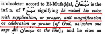 In another Quranic verse and a similar context, we see the usage of the Arabic term 'Yussabihna' which means to glorify God in praise in a raised voice during supplication or prayer.
