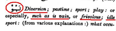 [1] LANE. E.W, Edward Lanes Lexicon, Williams and Norgate 1863; Librairie du Liban Beirut-Lebanon 1968, Volume 1, Page 123