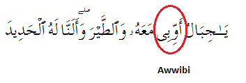 “And certainly We gave to David excellence from Us: O mountains! sing (Arabic Awwibi) praises with him and the birds; and We made the iron pliant for him”