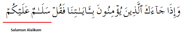 “When those come to thee who believe in Our signs, Say: "Peace be on you (Arabic: Salamun Alaikum): Your Lord has inscribed for Himself (the rule of) mercy: verily, if any of you did evil in ignorance, and thereafter repented, and amend (his conduct), lo! He is Oft-forgiving, Most Merciful”