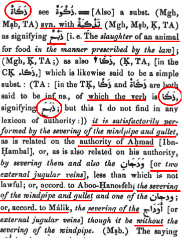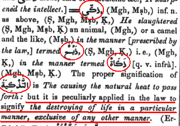 Please take particular note of the meaning of the word ‘Thakaytum’ as understood by classical Arabs which has been used to signify the ending of life in a particular manner, exclusive of any other manner. This has been well attested, by strong classical lexicon authority to signify slaughter. Furthermore, it is the details of 'slaughter' which are debated (and left to the development of Shariah / law) and not the word's significance as to mean 'slaughter'.