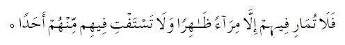 "...So do not argue / contend about them except on a matter that is clear / obvious, nor consult any of them about (the affair of) them (the sleepers)..." (18:22)